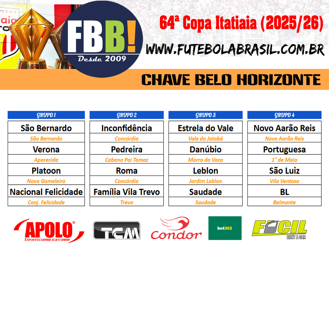 - Em BH foram escolhidas as “Arenas” (grama sintética/natural) para melhorar a condição de jogo: Betânia, Santa Rita, Inconfidência, Racing, Reunidos, Santa Cruz, Pompéia, Pitangui e Baleião - Inclusive poderemos ter rodada dupla - Jogos às 11hs e 16hs!