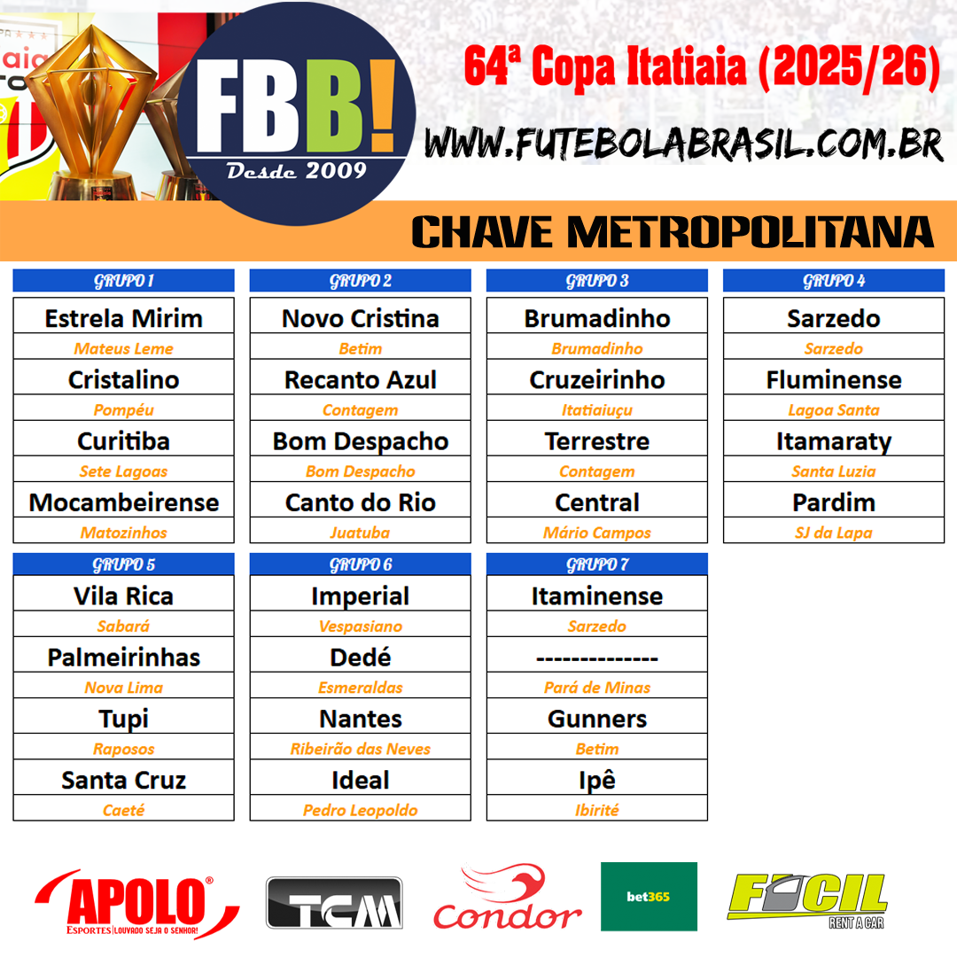 PUBLICADO em 30/10 - FONTE: www.itatiaia.com.br - 64ª Copa Itatiaia KTO: conheça os times já classificados para a disputa 2025/2026