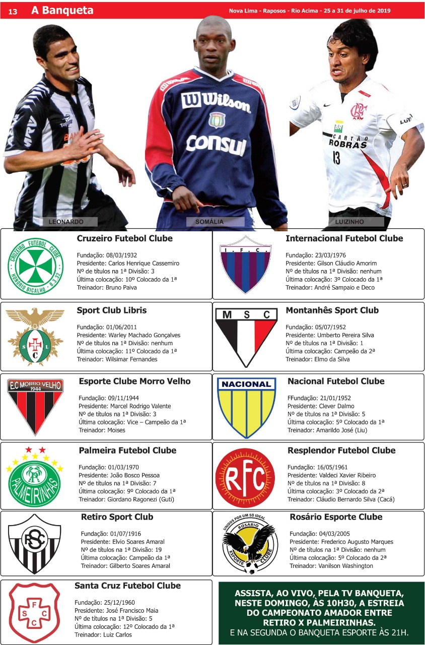 *** Além de contar com times de renome, entre eles time centenário, elite de Nova Lima contará com grandes nomes dentro das 4 linhas!