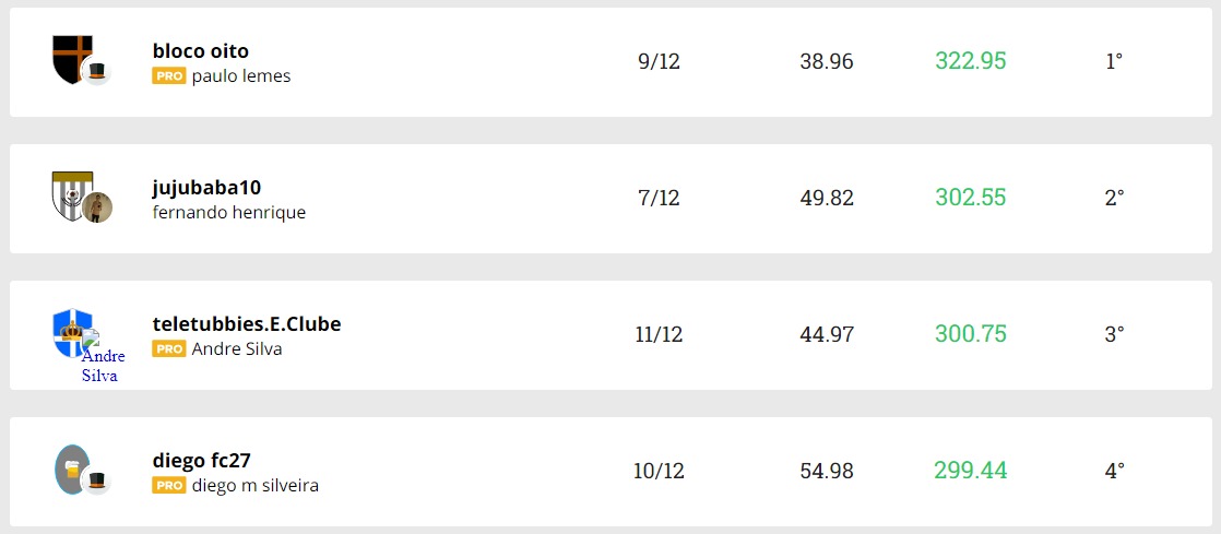 Campeão do 2º turno = 5% de tudo que for arrecadado
