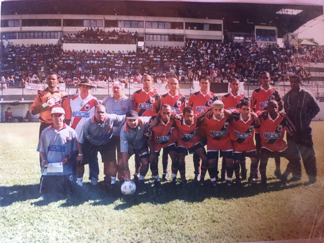 O MAIOR, Santa Cruz FC de BH, campeão da Copa Itatiaia 2001 - Claudinho presidente, 1ª Copa do Manager Dedé de Esmeraldas, alguns jogadores DFC: Juninho Gigante, Helio goleiro, Roque, Ricardo Preto “de Neves”, Rosenberg, Juliano , entre outras feras - Santa Cruz 2 x 1 Pedro Leopoldo - gols Roque e Rosemberg, direto do antigo Campo do 7 (hoje Arena INDEPA) - Foto enviada por Gigante!