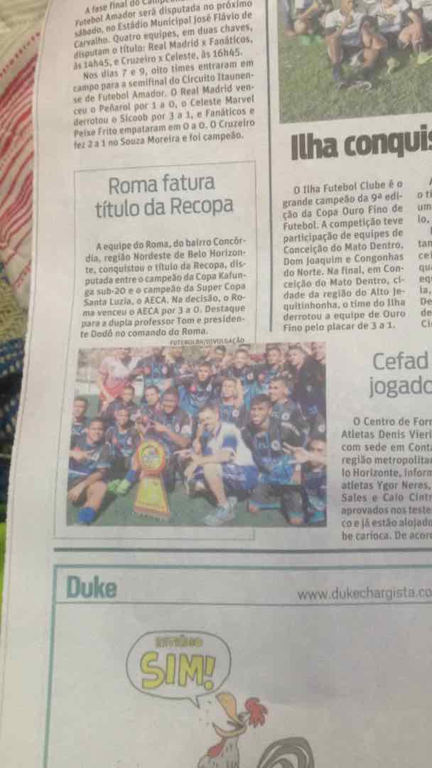 *** Mais uma matéria do SITE FBB! no Jornal Super Noticia - Edição de 19/09/2017 - Parabéns ao jovens do Roma SUB20, mais uma vez campeão!