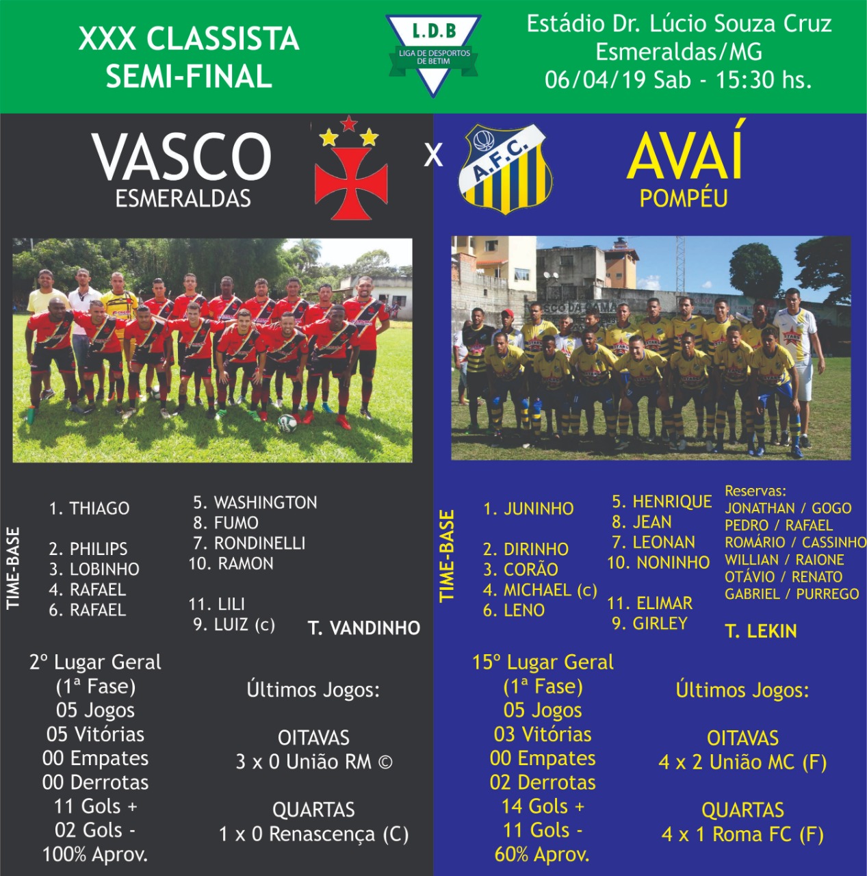 *** Reporter Kiko Inostroza da Rádio Esmeraldas FM faz quadro informativo sobre o grande duelo válido pela Semifinal do Classista 2019 - Na 1ª FASE deu Vasco 3 a 1.