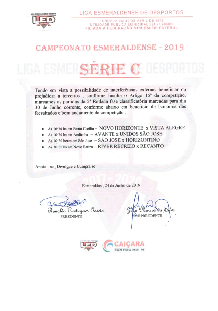RESULTADOS SÉRIE C 2019 - 28/07/2019