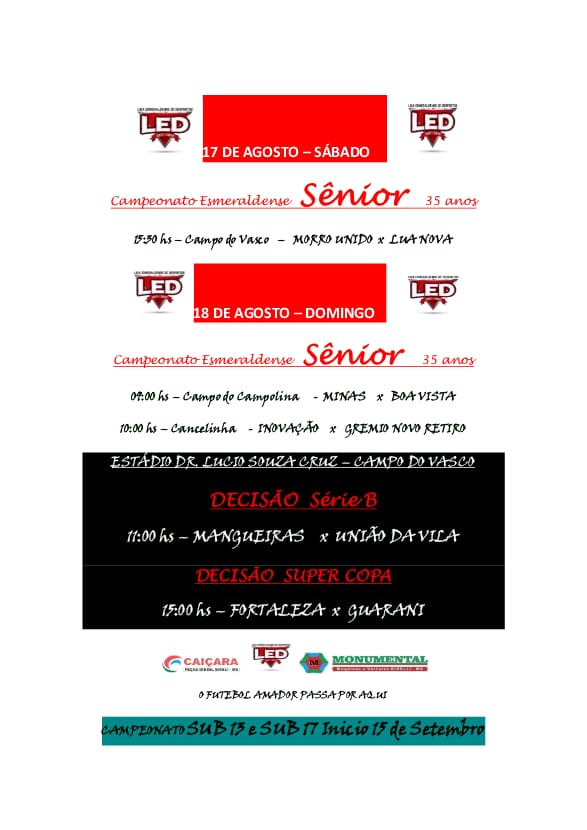 ATUALIZADO em 15/08 - Jogos do final de semana