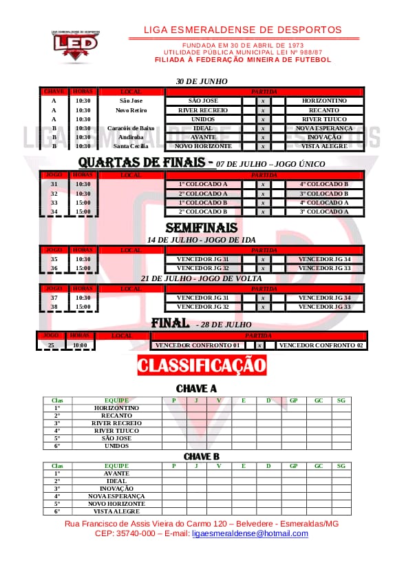 PUBLICADO em 08/07 - RESULTADOS ESMERALDAS 06/07/19 - SÉRIE B